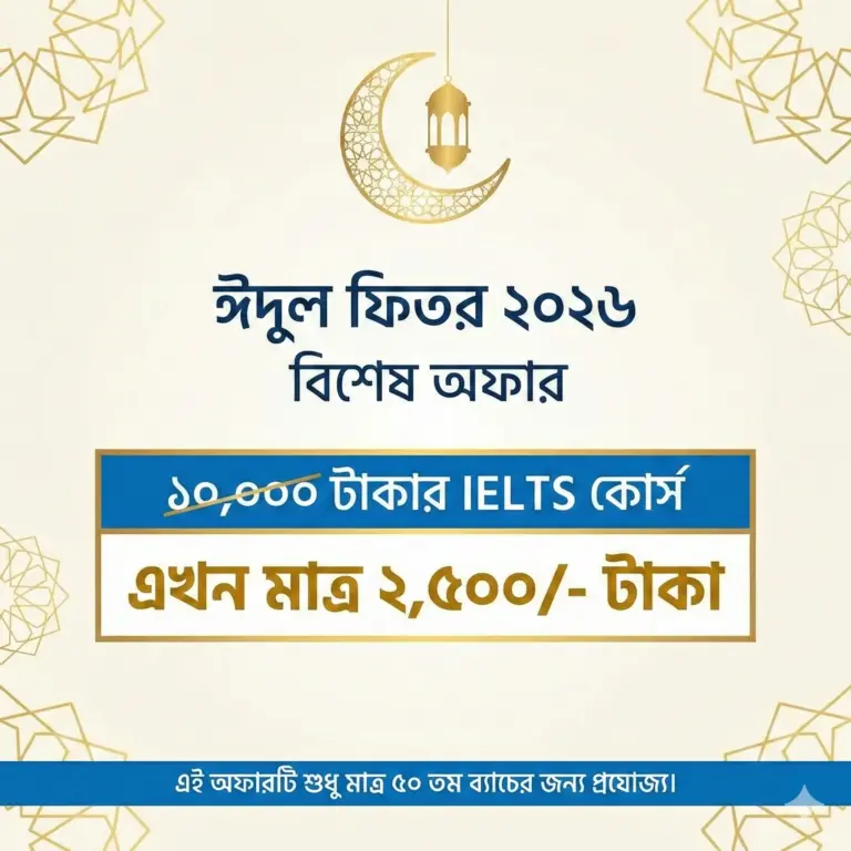 এই কোর্স শেষ করে আপনি IELTS Exam দিতে পারবেন। আলাদা করে কোচিংয়ের প্রয়োজন হবে না!